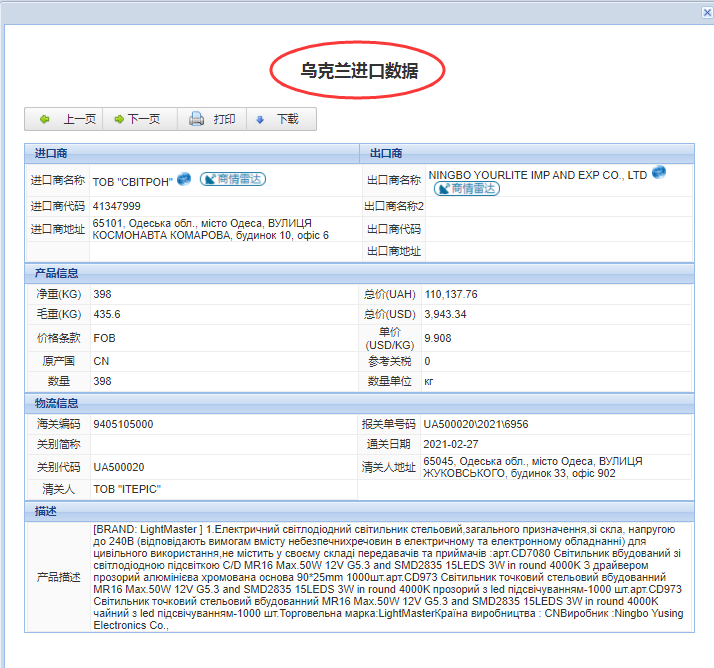 乌克兰海关数据——海关数据查询入口